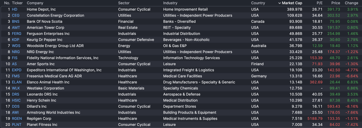 Według FinViz oto, jak dziś rano największe zyski (według kapitalizacji rynkowej) reagują po otwarciu rynku: